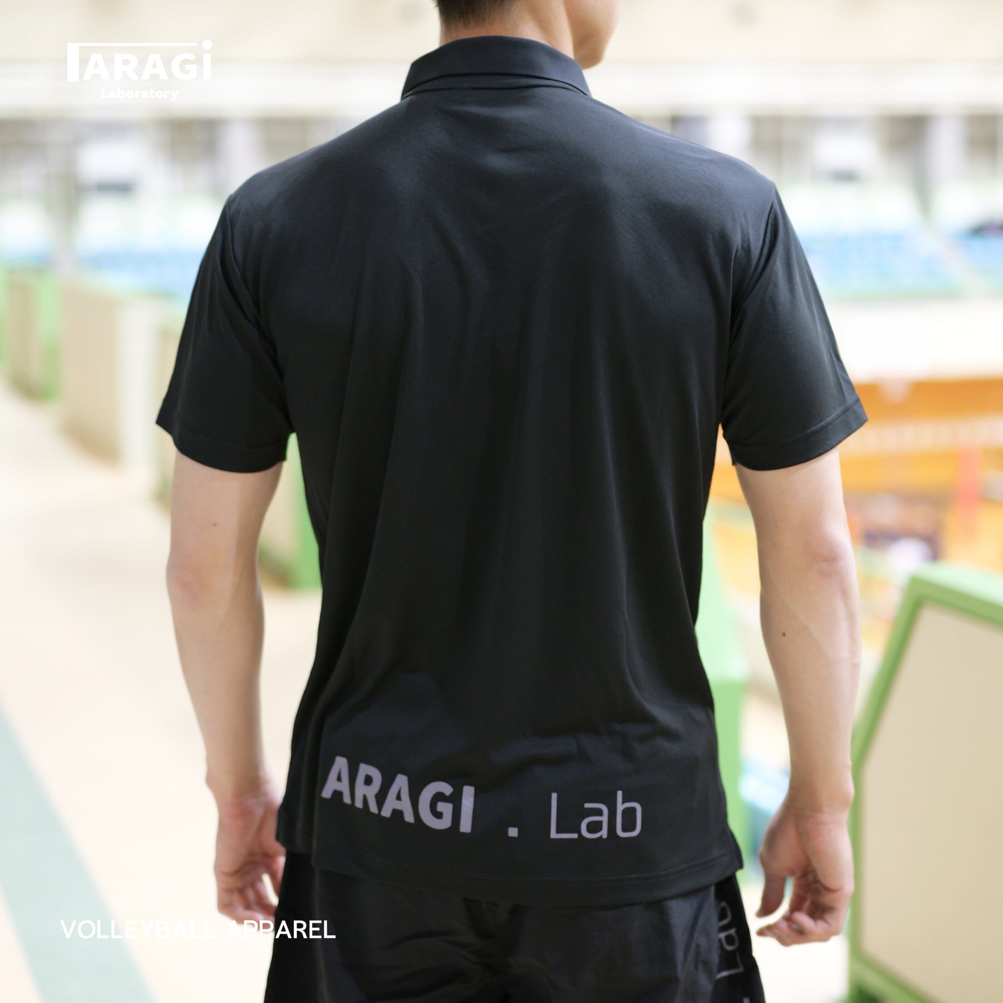 Front: 左胸にはARAGI.Laboratoryのメインロゴを配置。研究室の一員としての誇りと、誠実な印象を与えます。